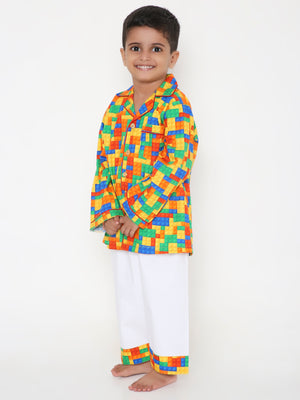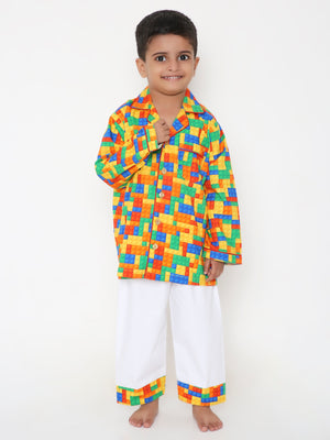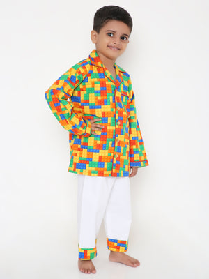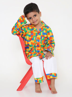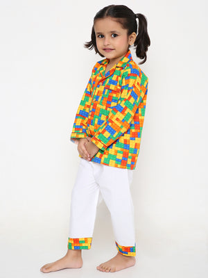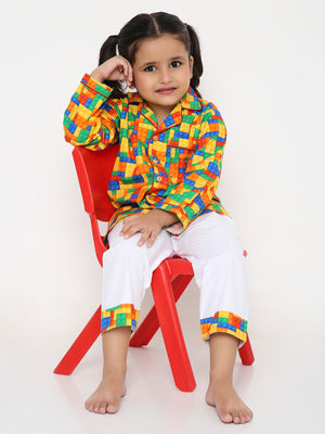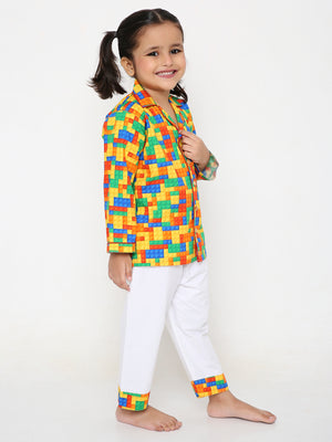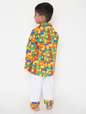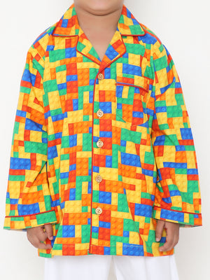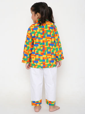 This playful and comfortable ensemble designed for the young and those who appreciate a touch of creativity in their loungewear. Unwind in a set that brings the joy of building and imagination to your relaxation routine. Crafted from soft, breathable cotton fabric, our Block Party PJ Set ensures a cozy fit for a restful night's sleep or a relaxed day of play at home.