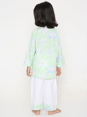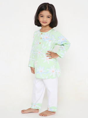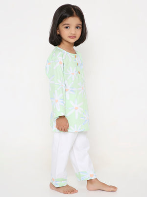 Immerse yourself in a garden of blossoms with our Blooms in Bed PJ Set. The delicate blooms add a touch of sophistication to your bedtime routine. Made from the softest, breathable fabric, our PJ set is designed to provide you with the utmost comfort. Enjoy a cozy and relaxing feel as you unwind.