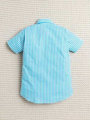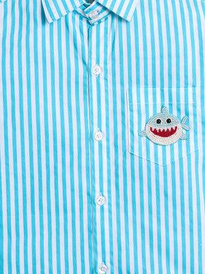 Dive into dreamtime with this baby-shark–tastic PJ set! Splashy blue stripes + the cutest beaded shark patch make bedtime feel like an ocean adventure.