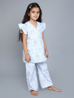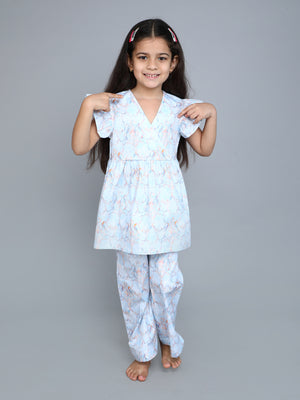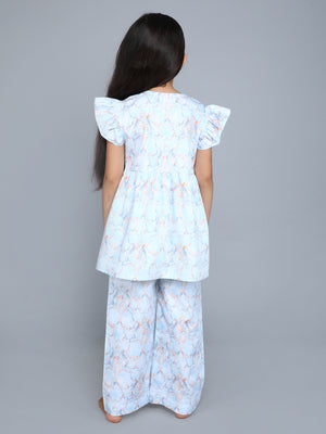 Blue Floral Print Cotton Co-ord Set