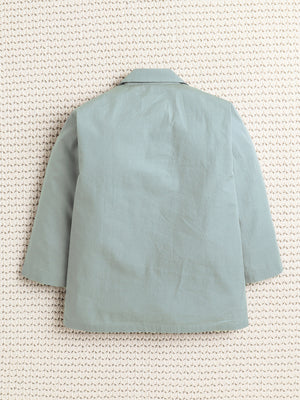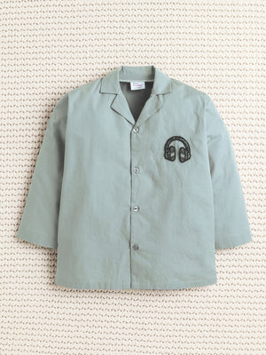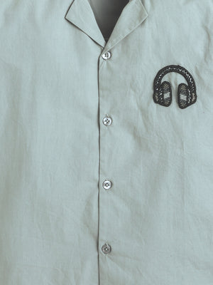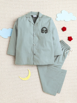 Give your little one the perfect mix of comfort and cool with this cotton shirt-and-pants pajama set. The button-down grey shirt features a trendy chillwave-style headphones patch, paired with relaxed-fit matching bottoms for easy, breezy sleep. Made from soft, breathable cotton, it’s ideal for bedtime, lounging, and everyday comfort.