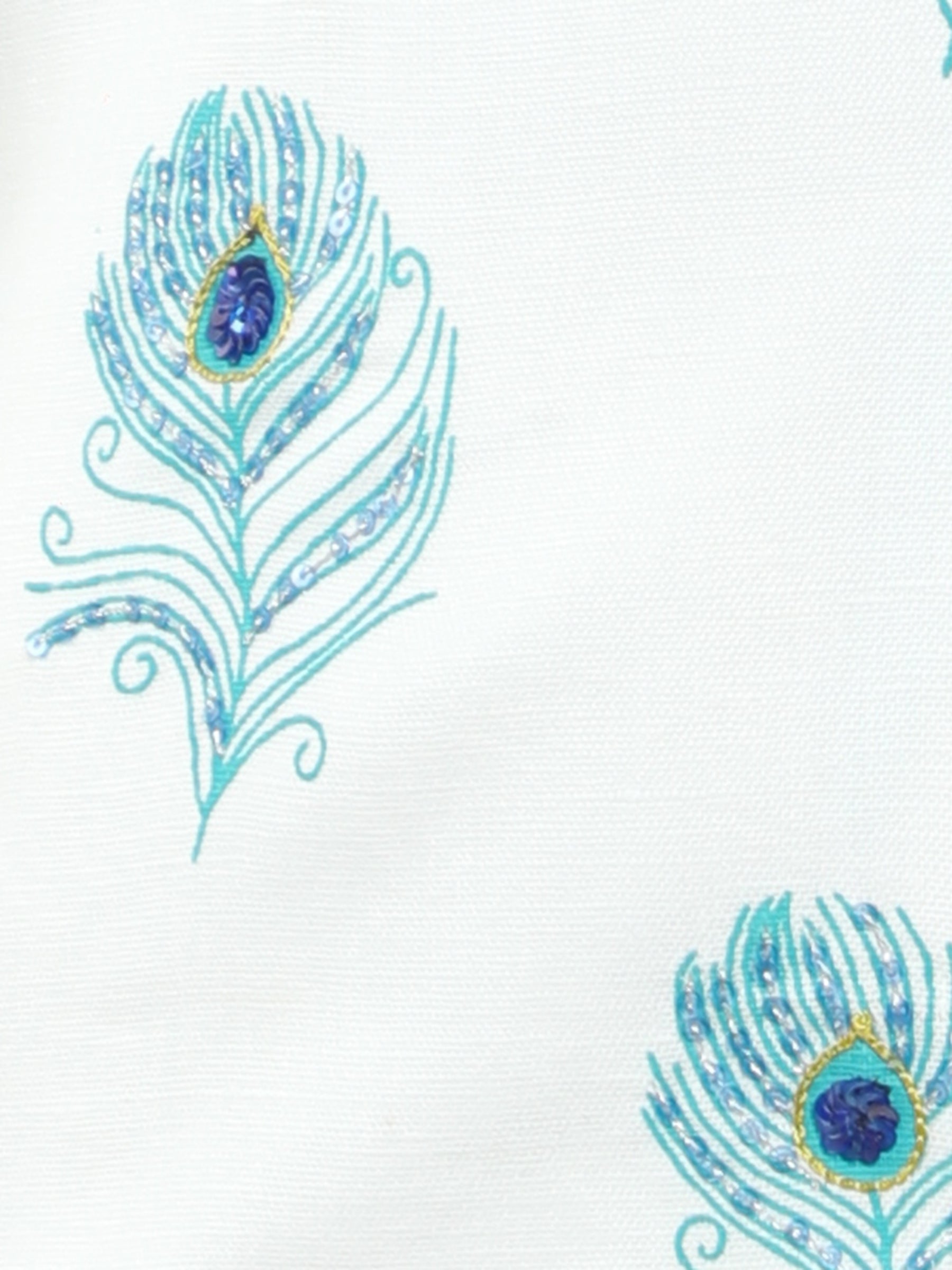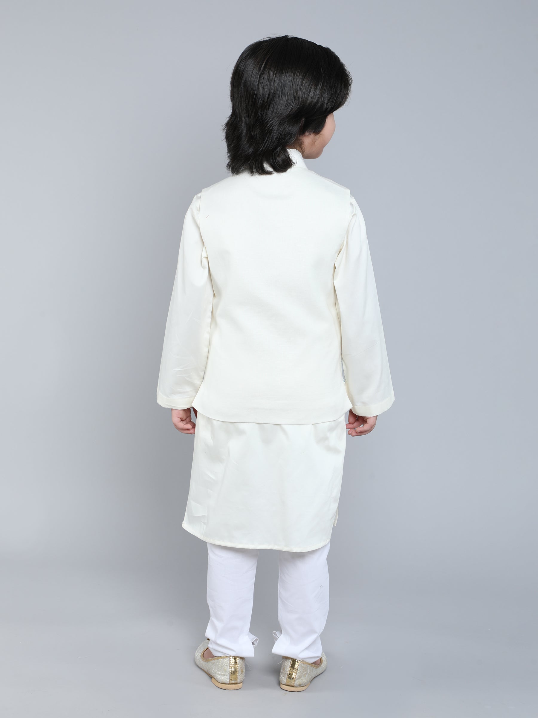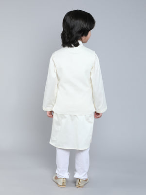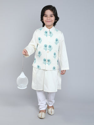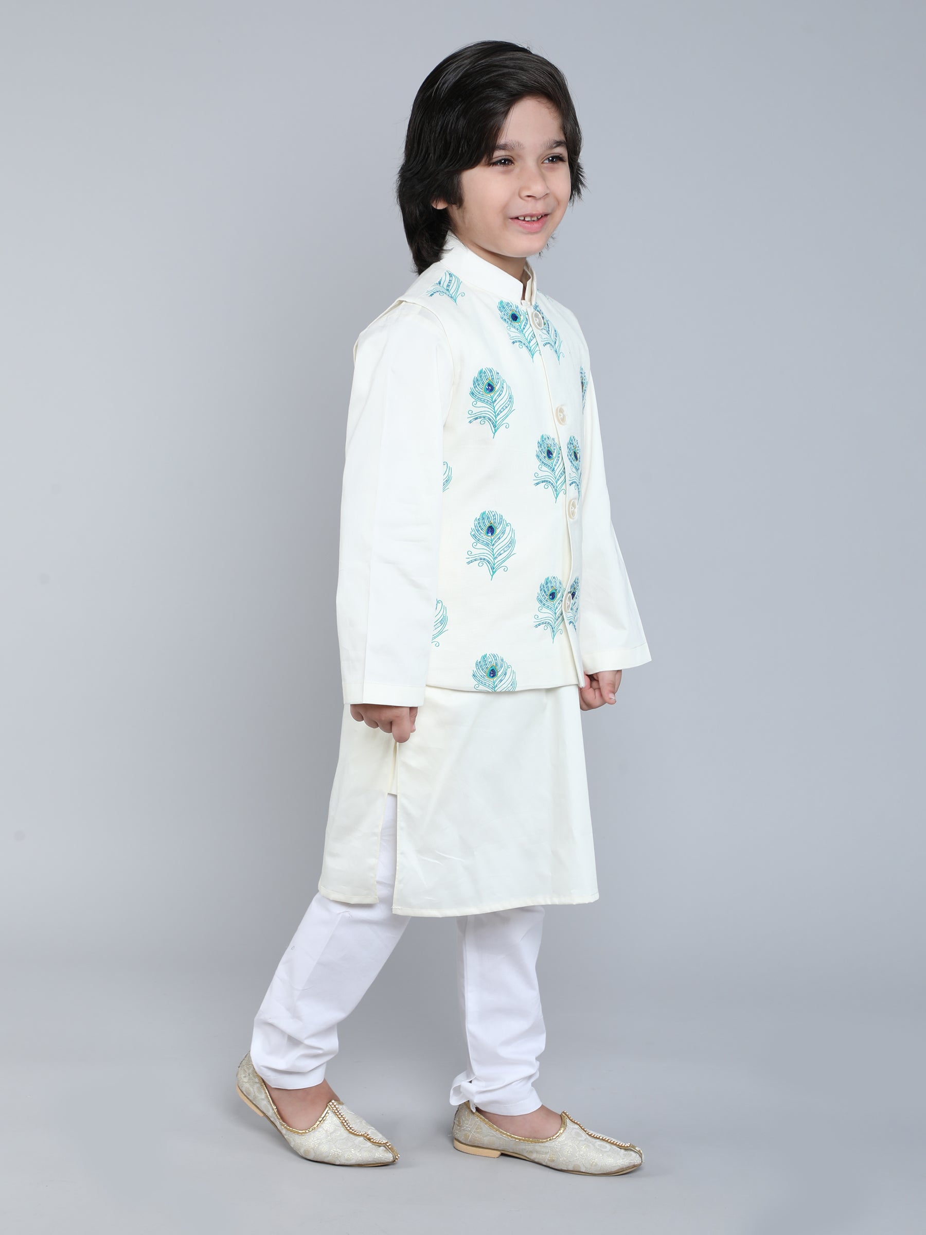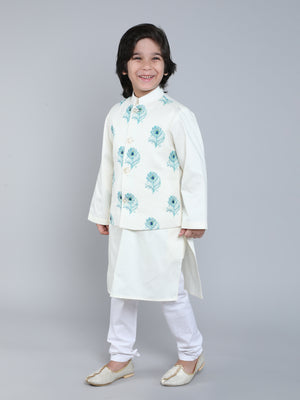 Ivory Kurta Set with Peacock Feather Embroidered Nehru Jacket