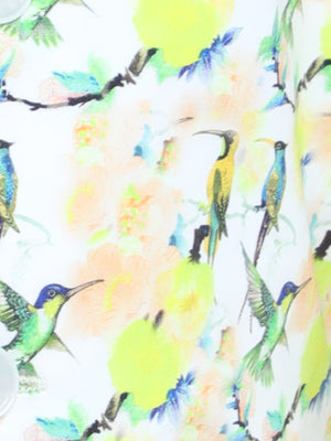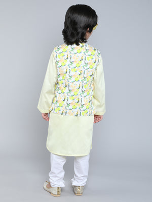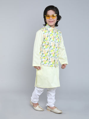 Lemon Yellow Kurta Set with Bird Print Nehru Jacket