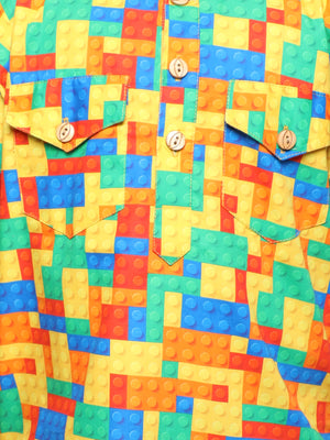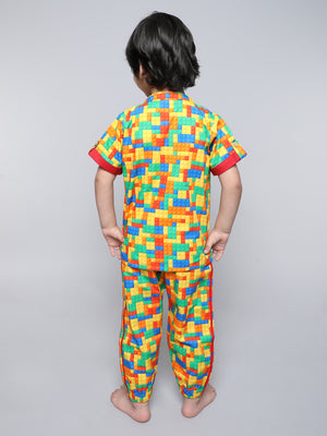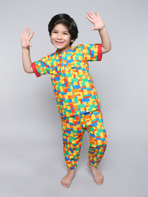This playful and comfortable ensemble designed for the young and those who appreciate a touch of creativity in their loungewear. Unwind in a set that brings the joy of building and imagination to your relaxation routine. Crafted from soft, breathable cotton fabric, our Block Party Co-ord Set ensures a cozy fit for a restful night's sleep or a relaxed day of play at home.