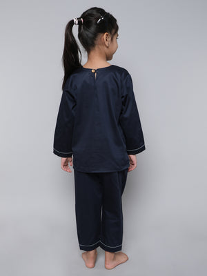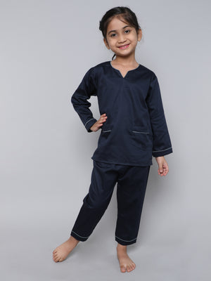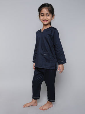 100% Cotton Silk V Neck Co-ord Set (Navy Blue)