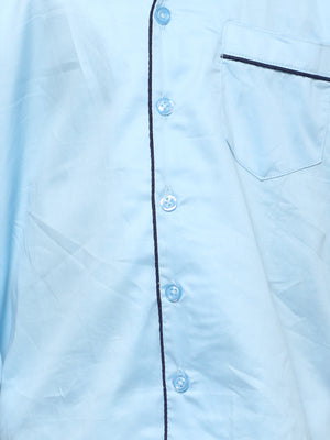 100% Cotton Silk Collar Neck Co-ord Set (Blue)