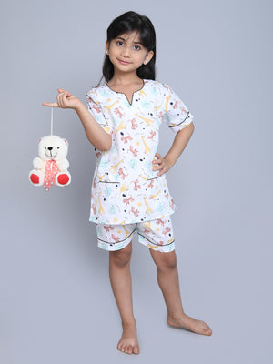 Cotton Animal V Neck Print Co-ord Set