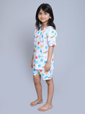 Dive into a realm of cuteness with our vibrant prints & adorable patterns. Our enchanting collection of kids' nightwear brings imagination to your little ones bedtime. Crafted with utmost care and attention to detail, each piece ensures a itch free, snug fit for a restful night's sleep. Crafted from the softest, chemical free, breathable, premium cotton fabrics, our nightwear ensures a gentle embrace for delicate skin. Let your little ones sleep soundly in the lap of ultimate comfort.