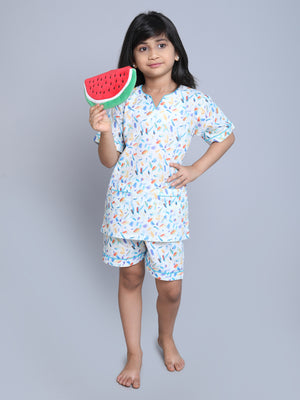 Dive into a realm of cuteness with our vibrant prints & adorable patterns. Our enchanting collection of kids' nightwear brings imagination to your little ones bedtime. Crafted with utmost care and attention to detail, each piece ensures a itch free, snug fit for a restful night's sleep. Crafted from the softest, chemical free, breathable, premium cotton fabrics, our nightwear ensures a gentle embrace for delicate skin. Let your little ones sleep soundly in the lap of ultimate comfort.