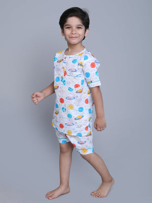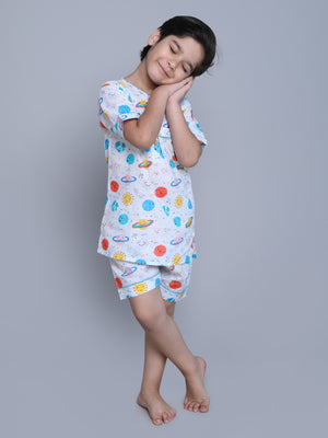 Dive into a realm of cuteness with our vibrant prints & adorable patterns. Our enchanting collection of kids' nightwear brings imagination to your little ones bedtime. Crafted with utmost care and attention to detail, each piece ensures a itch free, snug fit for a restful night's sleep. Crafted from the softest, chemical free, breathable, premium cotton fabrics, our nightwear ensures a gentle embrace for delicate skin. Let your little ones sleep soundly in the lap of ultimate comfort.