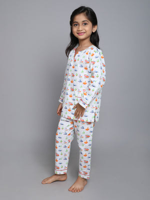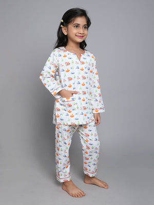 Dive into a realm of cuteness with our vibrant prints & adorable patterns. Our enchanting collection of kids' nightwear brings imagination to your little ones bedtime. Crafted with utmost care and attention to detail, each piece ensures a itch free, snug fit for a restful night's sleep. Crafted from the softest, chemical free, breathable, premium cotton fabrics, our nightwear ensures a gentle embrace for delicate skin. Let your little ones sleep soundly in the lap of ultimate comfort.