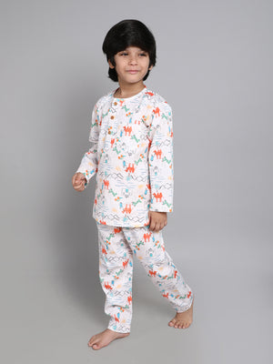 Dive into a realm of cuteness with our vibrant prints & adorable patterns. Our enchanting collection of kids' nightwear brings imagination to your little ones bedtime. Crafted with utmost care and attention to detail, each piece ensures a itch free, snug fit for a restful night's sleep. Crafted from the softest, chemical free, breathable, premium cotton fabrics, our nightwear ensures a gentle embrace for delicate skin. Let your little ones sleep soundly in the lap of ultimate comfort.