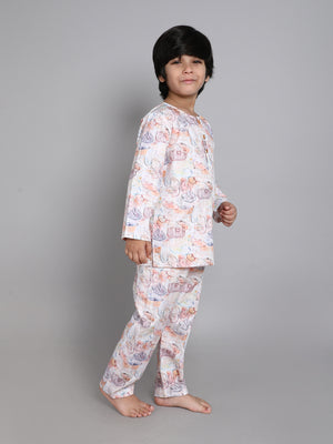 Dive into a realm of cuteness with our vibrant prints & adorable patterns. Our enchanting collection of kids' nightwear brings imagination to your little ones bedtime. Crafted with utmost care and attention to detail, each piece ensures a itch free, snug fit for a restful night's sleep. Crafted from the softest, chemical free, breathable, premium cotton fabrics, our nightwear ensures a gentle embrace for delicate skin. Let your little ones sleep soundly in the lap of ultimate comfort.