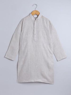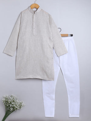 Pure Linen natural linen colour Kurta paired with a white cotton Churidaar with an elastic waist.