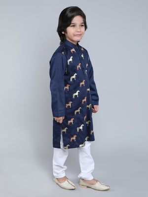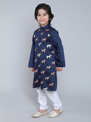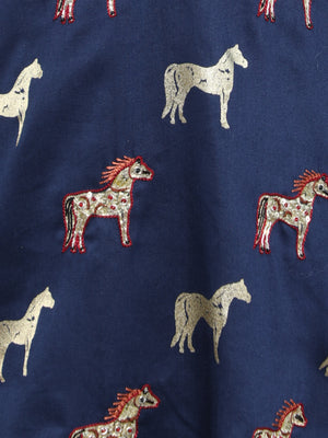 Navy Blue Embroidered Horse Kurta Set