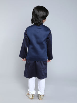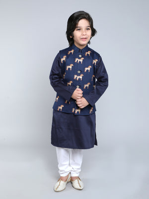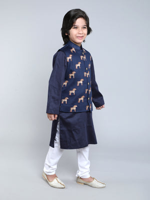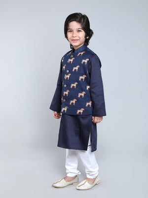 Navy Blue Kurta Set with Embroidered Horse Nehru Jacket