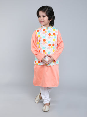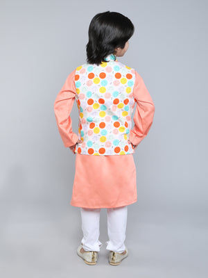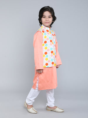 Peach Kurta Set with Smiley Printed Nehru Jacket