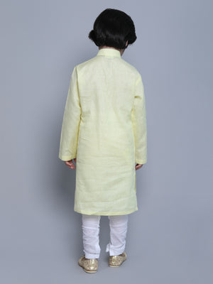 Pure Linen Kurta Set - colored embroidery - Yellow
