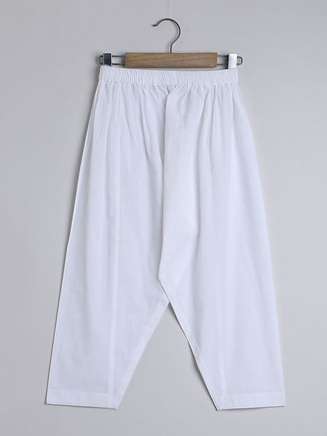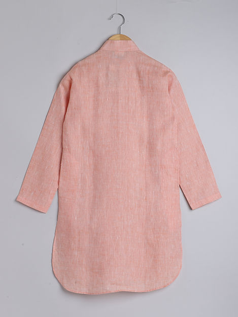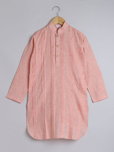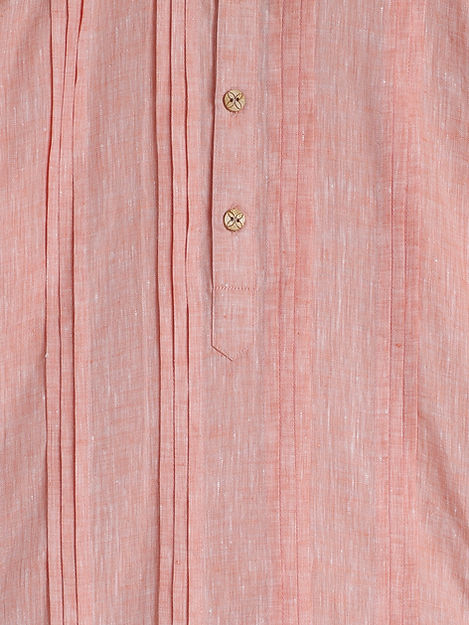 Pure Linen peach Pathani Kurta with self color pleating work paired with a white cotton Pathani Salwaar with an elastic waist.