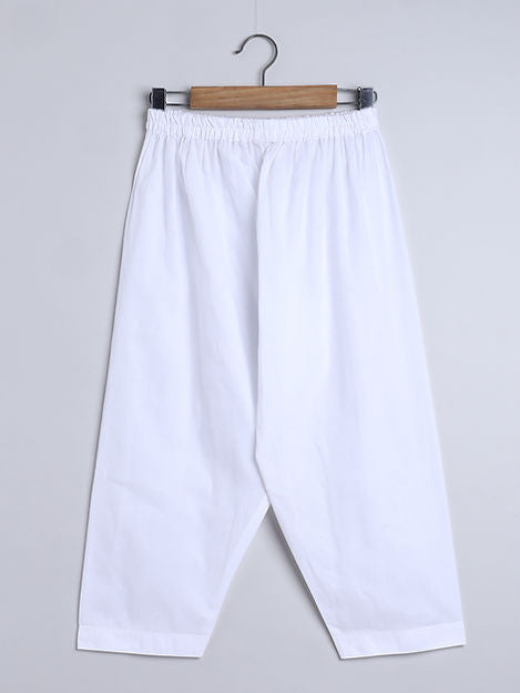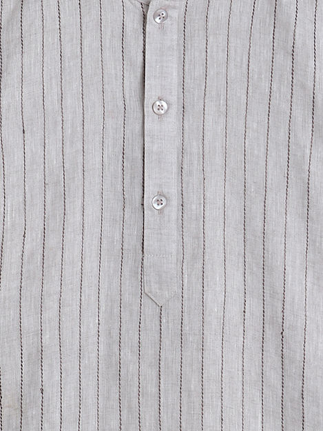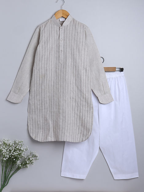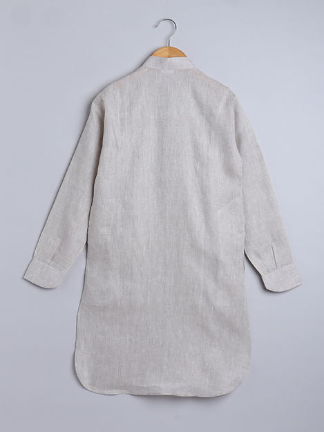 Pure Linen natural linen colour Pathani Kurta with single thread work paired with a white cotton Pathani Salwaar with an elastic waist.