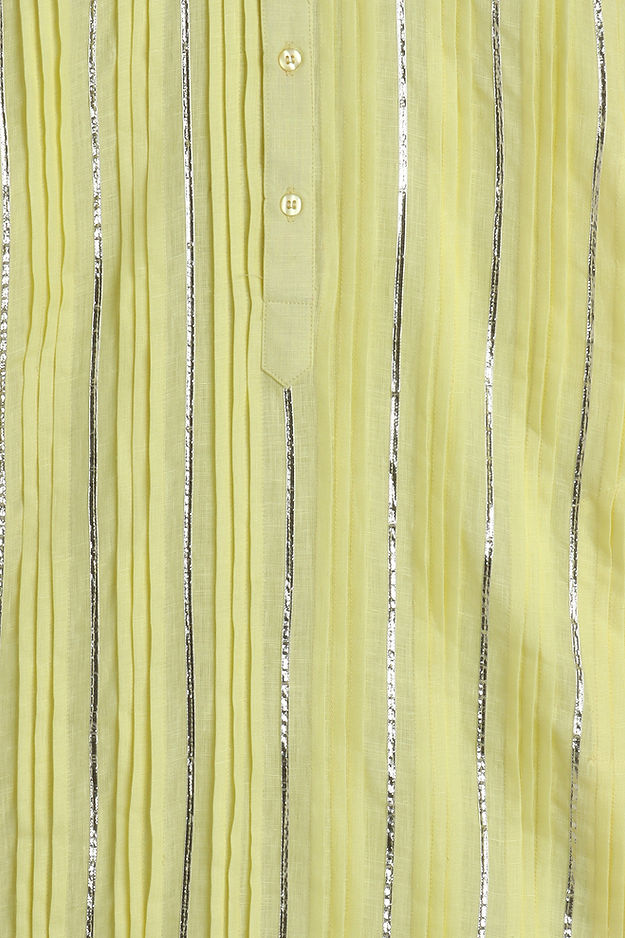 Pure Linen lemon yellow colour- pleats with gold lace work - kurta set