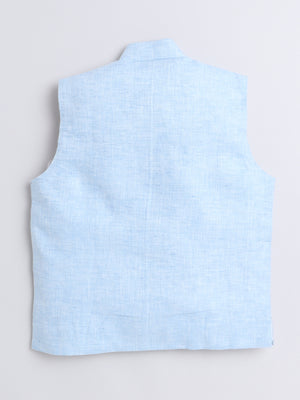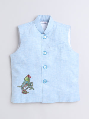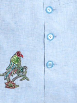Pure Linen Nehru jacket - silver color embroidery - Blue