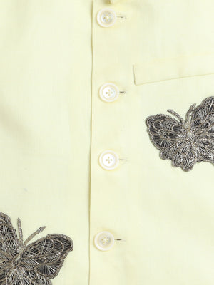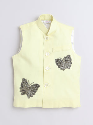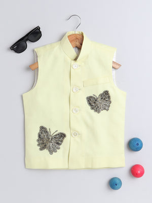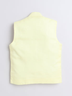 Pure Linen Yellow Nehru jacket with Gold color embroidery work .
