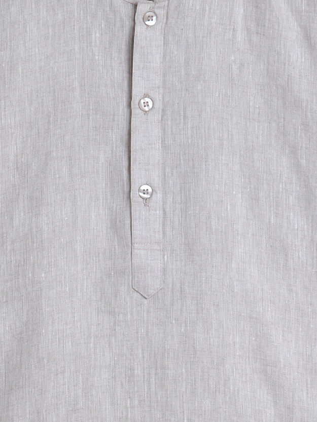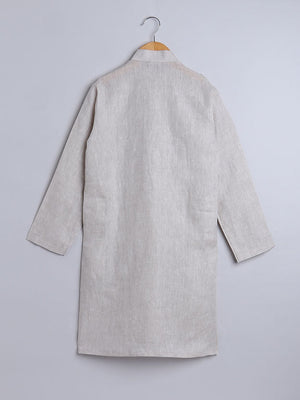 Pure Linen natural linen colour Kurta paired with a white cotton Churidaar with an elastic waist.