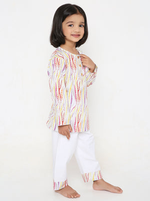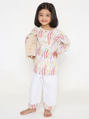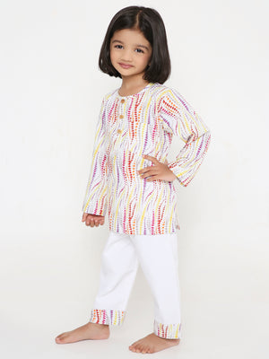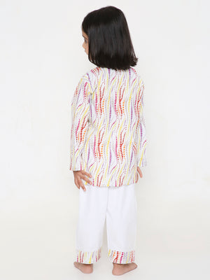 Step into the world of vibrant comfort with our "Rainbow Ripple PJ Set." Perfect for those who love color or anyone seeking a lively touch in their loungewear. This set is made from 100% Cotton and is designed for delightful relaxation and radiant dreams. Indulge in the radiance of a rainbow-inspired palette & Experience the luxury of soft, breathable fabric. Unwind in style with a colorful and joyous loungewear ensemble.