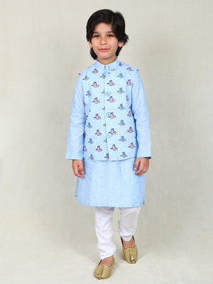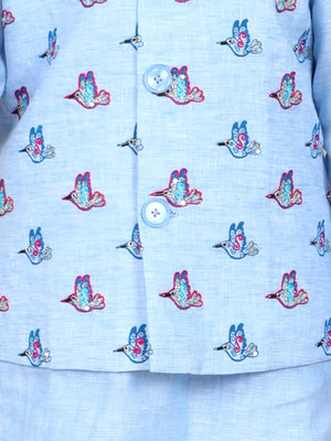 Sky Blue Kurta Set with Embroidered Bird Nehru Jacket