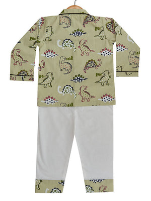 Bring back the prehistoric era with our adorable dinosaurs in this Jurassic park pj set. Watch your little ones Rawwwr in delight as they rub their sleepy eyes and get ready to visit their favorite T-Rex in la la land. Let your kids go RAWR in our friendly Jurassic Park PJ Set Made in organic cotton, these are perfect for every weather and every mood.