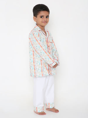 Tranquility in Tradition Co-ord Set is a harmonious blend of timeless elegance and peaceful comfort. Immerse yourself in the serenity of tradition with this thoughtfully designed ensemble, crafted for a restful night's sleep or a fun-filled with a touch of cultural charm.